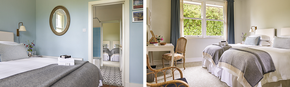 This recently refurnished country house has clean modern lines, cosy furnishings and picture windows to maximise the soothing views of the bright green lawns and impressive woodlands beyond. With the six bedrooms laid out with each pair of king & twin sharing a bathroom. Two bathrooms have bath with overhead showers while the third has one large walk-in shower. Bathrooms and slippers provided for all guests.